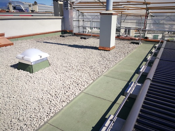 Tout d’abord, il est important de réaliser une étude technique pour déterminer la faisabilité du projet. Ensuite pour une toiture plate, il faut poser une barrière vapeur puis une isolation thermique (extrudée, poluyréthane, minéral) puis un lès bitumineux et un revêtement praticable piéton (dalettes) ou non praticable (graviers).